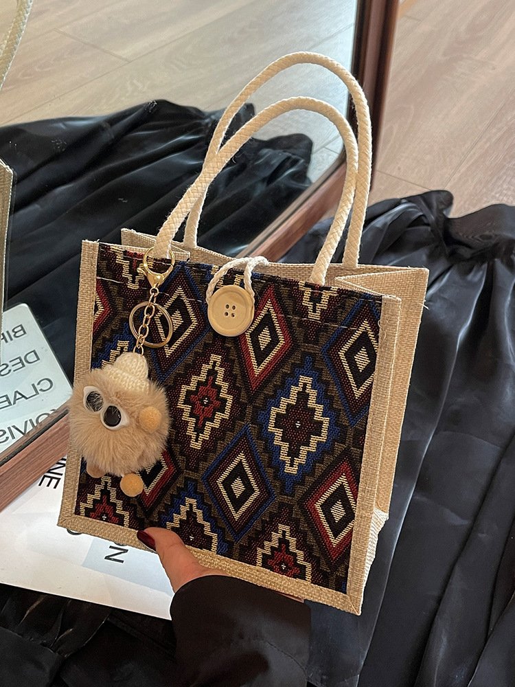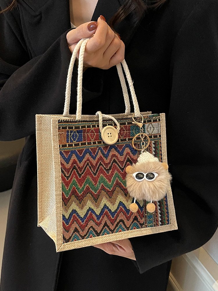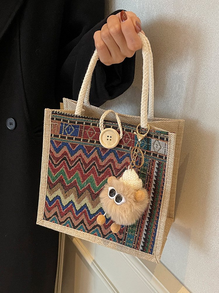 Niche Autumn and Winter New Ethnic Style Handbag for Women Commuting to Work, Casual Tote Bag, Linen Lunch Box Bag